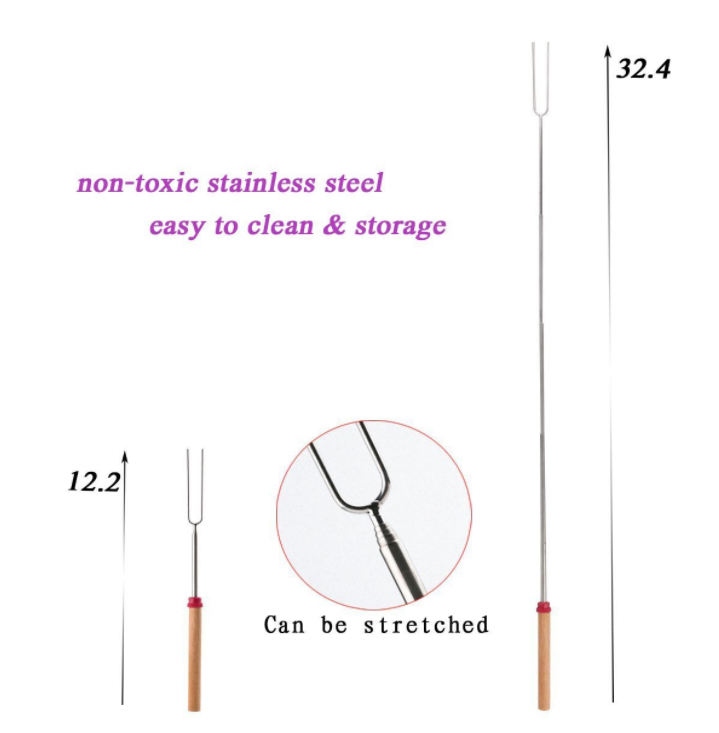 ✔ STRETCHABLE: Flexible design, can stretch from 12.2 inch to 32.4 inch. Free to lengthen and shorten. You don’t need to fork delicious food in short distance any longer. Keep you free from dangerous oven and fire. Perfect for children to use them, let parents rest assured from then on. Telescoping retracting fork design convenient for camping trips, fishing trips, backpacking or storing at home. Packed by a yellow clothes bag, convenient for you to carry.