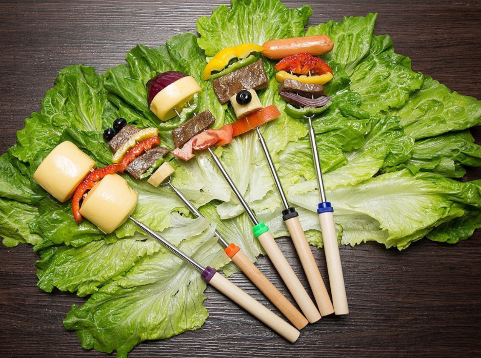 ✔ GOOD HELPER: Colorful colors: Navy blue, green, purple, black, orange, pink, red, yellow, heat resistant handles make identification easily. Our telescoping BBQ skewers are good helper for barbecue, you can use it to grill and roast your favorite food, such as marshmallow, hot dog, corn, vegetable and meat. Enjoy the happy dinning time with your family and friends!
